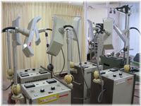 高周波電流のもたらす深部温度効果によって局所に充血が起こり、新陳代謝が促進されます。肩こり、肩関節周囲炎、坐骨神経痛、捻挫、打撲、筋肉痛などに使用します。